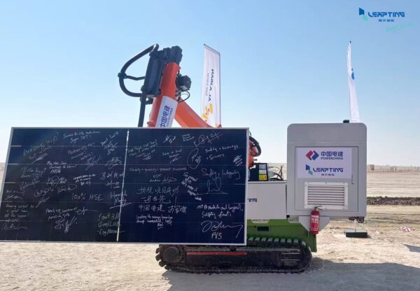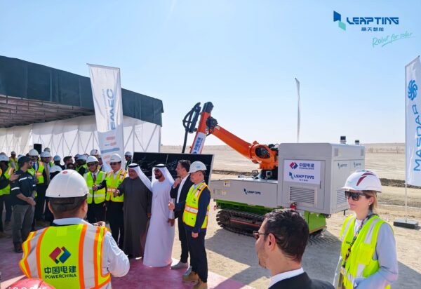 近日,LEAPTING丽天智能(以下简称“丽天智能”)自主研发的自动导航组件铺设机器人(以下简称“安装机器人”)在阿联酋阿布扎比PV3项目现场正式启动运行,并于1月14日上午参与了由EPC主办的开工仪式, 来自阿联酋水电公司EWEC、Masdar能源、法国电力集团EDF、韩国西电以及中国电建华东院等多家机构的高级代表及业内专家共同出席了本次仪式。
